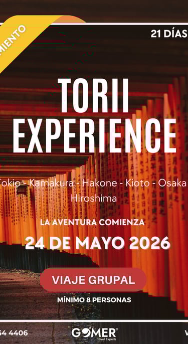 Embárcate en un viaje donde Japón revela su encanto más profundo. Recorre Tokio, Hakone, Kioto, Osaka e Hiroshima a través de experiencias pensadas para quienes buscan algo más que un simple recorrido. Déjate envolver por el brillo futurista de Tokio, la serenidad del Lago Ashi entre montañas, la espiritualidad de los templos de Kioto, la energía irresistible de Osaka y las historias que tocan el alma en Hiroshima. Todo con gastronomía excepcional, estancias cuidadosamente elegidas y un itinerario diseñado para que cada día se sienta como un capítulo inolvidable.