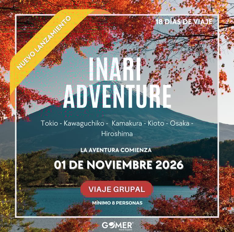 Descubre Japón en su temporada más mágica. Recorre Tokio, Kamakura, Kawaguchiko, Kioto, Osaka e Hiroshima mientras el paisaje otoñal se llena de tonos rojos y dorados. Contempla el icónico Monte Fuji reflejado en el lago Kawaguchi, los templos cubiertos de hojas en Kioto, la energía gastronómica de Osaka y la historia que inspira en Hiroshima. Todo dentro de un itinerario armonioso, con experiencias auténticas, sabores de temporada y hospedajes seleccionados para tu confort.