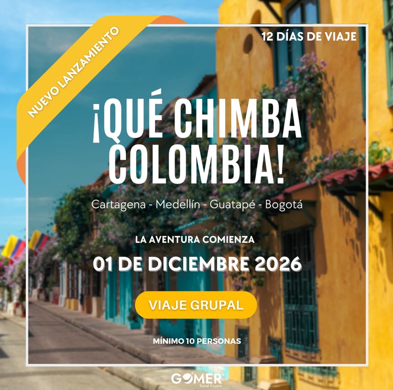 Explora Colombia en un viaje lleno de color, cultura y contrastes inolvidables. Recorre Cartagena, Medellín, Guatapé y Bogotá mientras te sumerges en la esencia caribeña, la innovación urbana y la riqueza histórica del país. Déjate envolver por las calles coloniales y atardeceres dorados de Cartagena, la transformación vibrante de Medellín, los paisajes únicos y la Piedra del Peñol en Guatapé, y el encanto cultural y gastronómico de Bogotá. Todo dentro de un itinerario equilibrado, con experiencias auténticas y sabores locales.